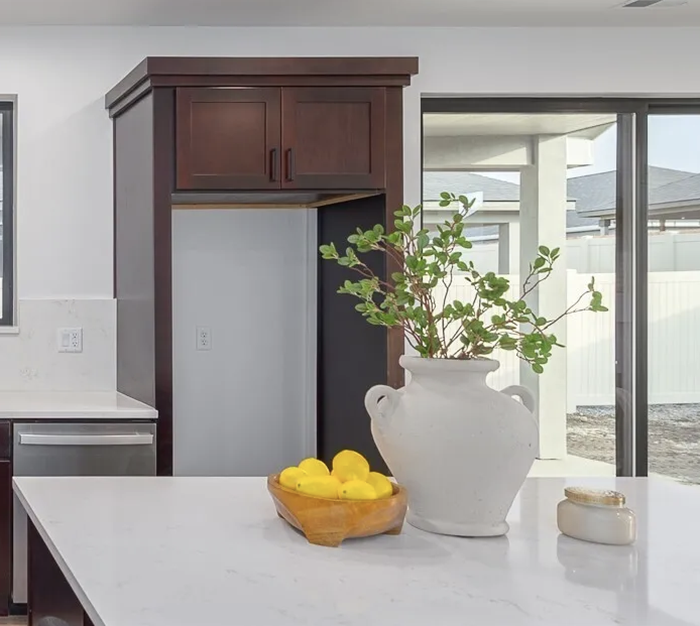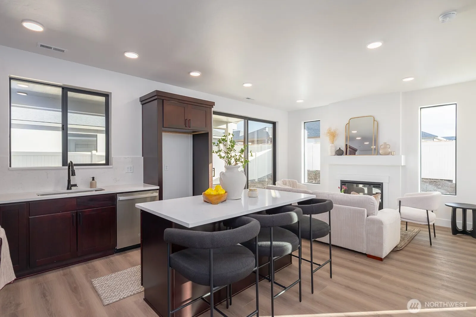Lot 11, The Adobe Plan is 1192sqft, has 3 beds, 2 baths, and a fully finished 2-car garage. This plan features 9ft ceilings, 8ft interior doors, an oversized covered back patio, stucco exterior, black windows and faucets, with quartz countertops and backsplashes.